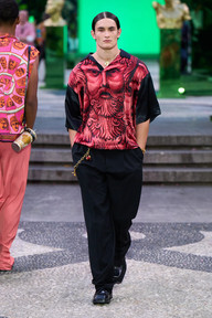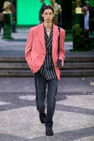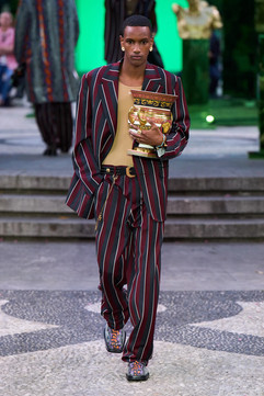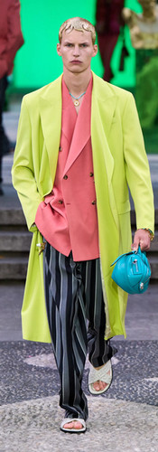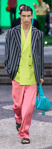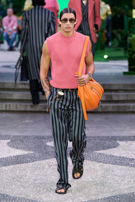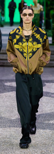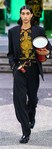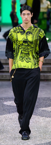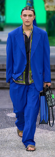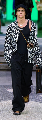 Với những ai là người hâm mộ trung thành của các dòng thời trang của nhà mốt Versace cũng như lối thiết kế của Donatella Versace thì có thể nhận thấy, sự tương phản luôn nắm giữ thế thượng phong trong mọi ý tưởng sáng tạo. Và BST Xuân Hè Nam 2023 này cũng không phải là một ngoại lệ. Sự tương phản thậm chí là bất đối xứng hiện diện ở mọi thiết kế trang phục. Nhưng điều đó không đồng nghĩa với việc các set đồ trở nên rườm rà, mất đi giá trị thẩm mỹ, mà ngược lại, chính sự tương phản có tính toán của Donatella cho thấy hình ảnh nam giới hiện đại hiện hữu vô cùng chân thật: tinh nghịch nhưng không kém phần sang trọng, ngạo nghễ nhưng lại hết mực nhạy cảm.