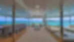 Ở bên ngoài, du thuyền có tầng lái nóc với khu vực ăn uống, bàn nướng BBQ và hiên tắm nắng cùng một bể sục Jacuzzi mặt kính. Boong chính có thể được bố trí thành rạp chiếu phim ngoài trời với hệ thống âm thanh, trình chiếu, ánh sáng hiện đại. Tổng cộng, du thuyền có thể chở theo 12 hành khách trong 8 phòng suite cùng một đoàn 21 thuyền viên. Riêng phòng suite dành cho chủ sở hữu nằm ở phần mũi thuyền, có giường đôi, thư phòng và phòng tắm riêng.