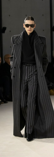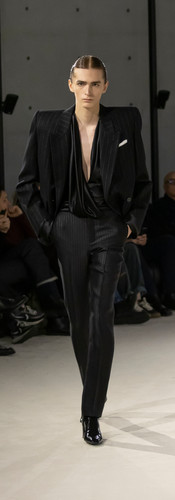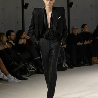 Ranh giới bị xóa nhòa đặc trưng giữa tính nam và tính nữ của nhà mốt tiếp tục hiện diện trong BST mới, khi các trang phục dành cho quý ông đều có ít nhiều vay mượn từ thời trang nữ. Điều này thể hiện rõ qua lối thiết kế tỷ lệ và ý tưởng về trang phục ôm sát cơ thể cũng như một số tiểu tiết như mũ trùm đầu trong bộ sưu tập dành cho nữ gần đây nhất của Saint Laurent được lặp lại trong những thiết kế dành cho nam giới thuộc Thu Đông 2023.