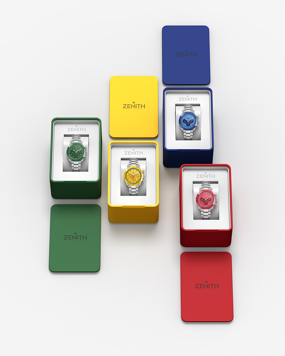 Đặc biệt, đây đều là những màu sắc hoàn toàn mới, chưa từng xuất hiện trong danh mục sản phẩm của Zenith trước đây, càng khiến cho set bốn chiếc đồng hồ này thêm phần giá trị.